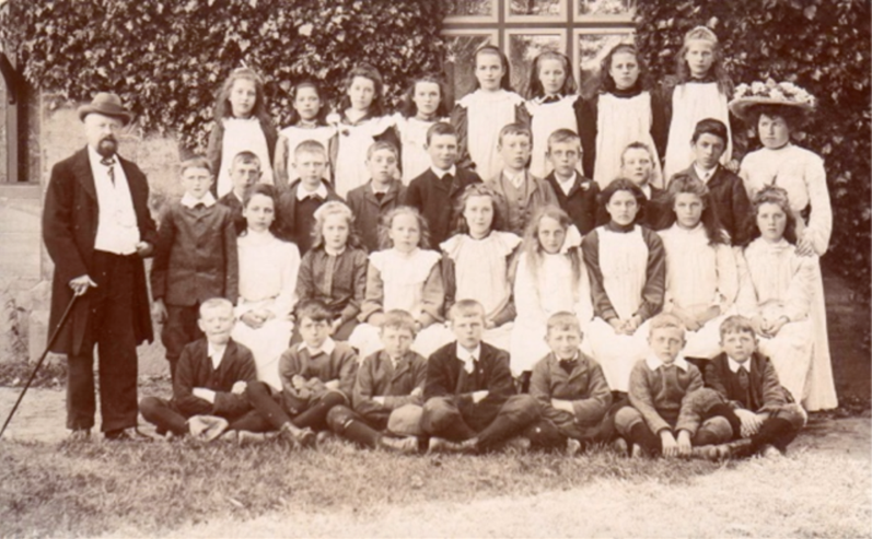 Cowfold Village History Society Posted on December 10, 2021 by admincvhsNovember 15, 2021 Day 10 St Peter’s School around 1910, with Mr. Bicknell, Headmaster, and Mistress Bessie Humphries.