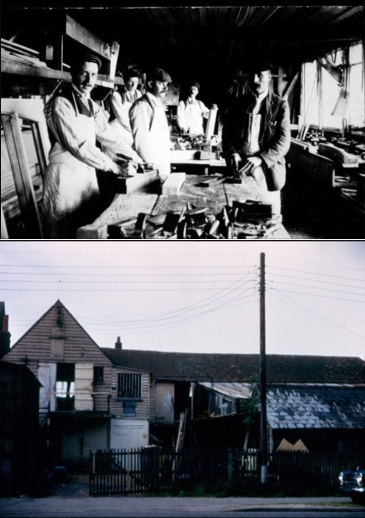 Cowfold Village History Society Posted on December 14, 2021 by admincvhsNovember 15, 2021 Day 14 Fowlers Carpentry Shop in Station Road and a group of Carpenters in the upper “Long Shop”. A wide range of work was undertaken, including the manufacture of the pitch pine pews that are still in St Peter’s Church and even coffins!